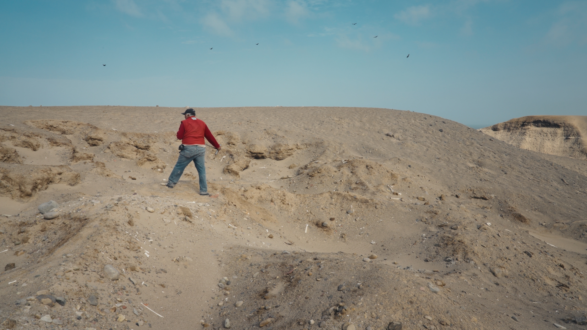 Depuis 2012, Louidgi Beltrame développe une recherche au Pérou, laquelle l’a mené aux géoglyphes de Nazca, ou à filmer la pratique du curandero (guérisseur traditionnel ou chaman) José Levis Picón Saguma. À travers des films, des photos, des encres sur toile et une sculpture, produits pour cette exposition, l’artiste s’intéresse à la figure liminale du huaquero ou « fouilleur de tombe clandestin ».